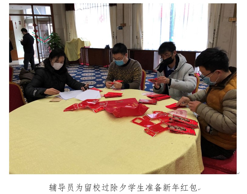饮食中心工作人员和党员突击队工作人员为留校师生分配餐食