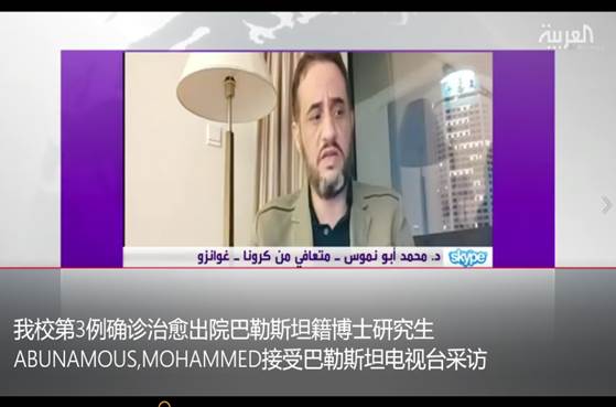 我校第3例确诊治愈出院研究生接受巴勒斯坦电视台采访(视频)