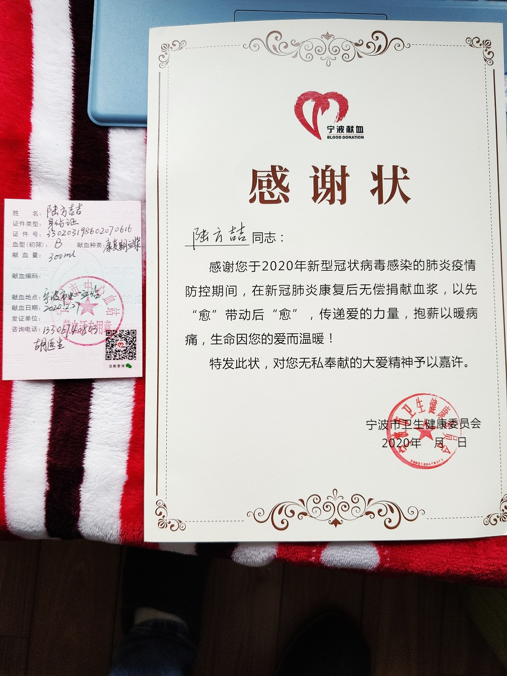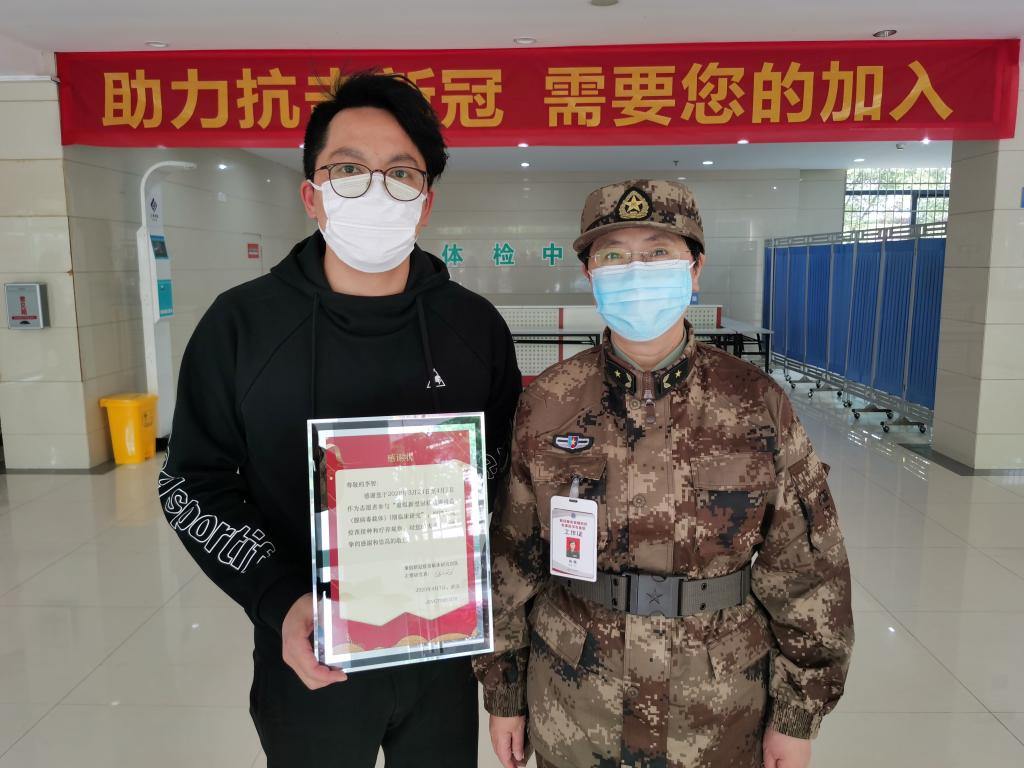 谢放同学参加雷神山抗疫工作的证明与纪念证书