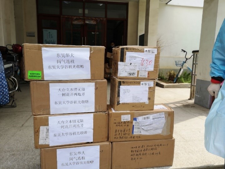 基金会爱心通道接收到了校友校董和社会爱心人士捐赠给学校医院的防护服、口罩、碘伏、手套、高强度氯精、外科手术隔离衣、酒精、氧气机、84消毒液、浓缩消毒水原液、食品饮品等大量防疫物资,有效缓解了学校现阶段防控物资紧缺的燃眉之急,增强和鼓舞了一线防控工作人员的信心。