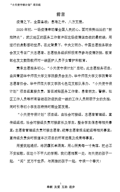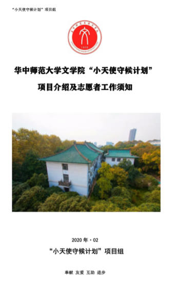 华中师范大学文学院“小天使守候计划”引导抗疫医务工作者、患者朋友、警察、社区工作人员的子女在特殊时期全面发展。